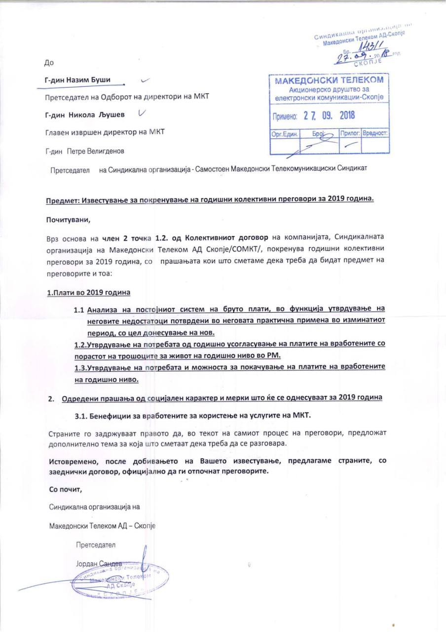 на годишни колективни преговори за усогласување на интересите за 2019 година.